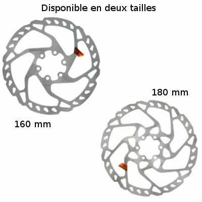 Disque frein VTT VAE 160 mm et 180 mm montage 6 trous